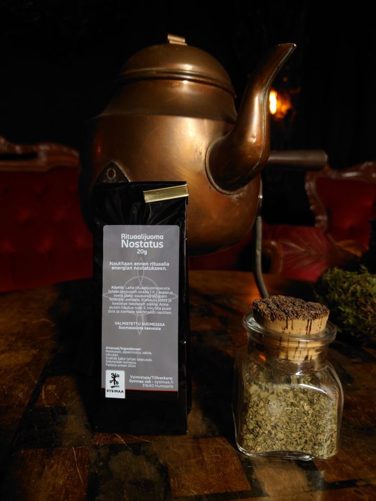 Lisäksi useita erilaisia rituaali- ja magiatuotteita, kuten henkilautoja, noitapalloja ja -pulloja, mustaa suolaa, yrttileimahdusjauheita, irtosuitsukkeita, suitsukenippuja. Kaikki tuotteet valmistetaan Suomessa.
